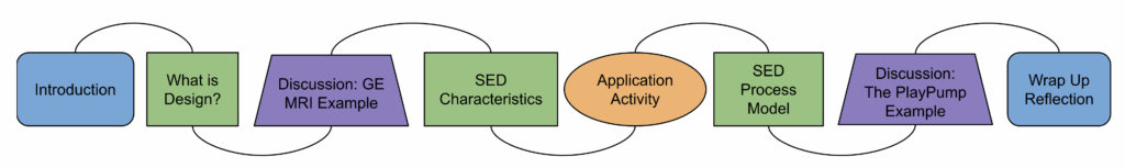 The session closes with a reflection on the potential use of the SED framework in the participants’ own design projects, and the role that contextual factors play in the design of engineering solutions.